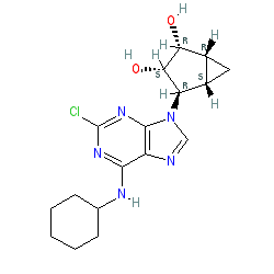 | SMILES | O[C@@H]1[C@H](O)[C@@H]2C[C@@H]2[C@H]1n1cnc2c(NC3CCCCC3)nc(Cl)nc21 |