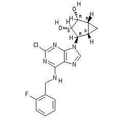 | SMILES | O[C@@H]1[C@H](O)[C@@H]2C[C@@H]2[C@H]1n1cnc2c(NCc3ccccc3F)nc(Cl)nc21 |