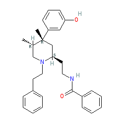 | SMILES | C[C@H]1CN(CCc2ccccc2)[C@H](CCNC(=O)c2ccccc2)C[C@@]1(C)c1cccc(O)c1 |