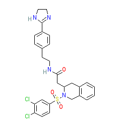 | SMILES | O=C(CC1Cc2ccccc2CN1S(=O)(=O)c1ccc(Cl)c(Cl)c1)NCCc1ccc(C2=NCCN2)cc1 |