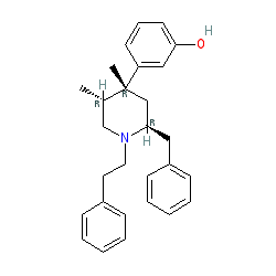 | SMILES | C[C@H]1CN(CCc2ccccc2)[C@H](Cc2ccccc2)C[C@@]1(C)c1cccc(O)c1 |