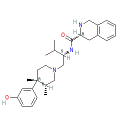 | SMILES | CC(C)[C@@H](CN1CC[C@@](C)(c2cccc(O)c2)[C@@H](C)C1)NC(=O)[C@H]1Cc2ccccc2CN1 |