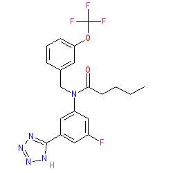 | SMILES | CCCCC(=O)N(Cc1cccc(OC(F)(F)F)c1)c1cc(F)cc(-c2nnn[nH]2)c1 |