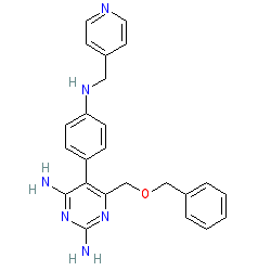 | SMILES | Nc1nc(N)c(-c2ccc(NCc3ccncc3)cc2)c(COCc2ccccc2)n1 |