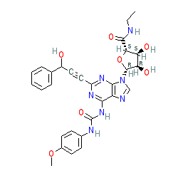 | SMILES | CCNC(=O)[C@H]1O[C@@H](n2cnc3c(NC(=O)Nc4ccc(OC)cc4)nc(C#CC(O)c4ccccc4)nc32)[C@H](O)[C@@H]1O |