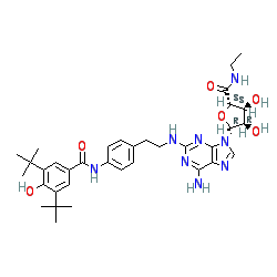 | SMILES | CCNC(=O)[C@H]1O[C@@H](n2cnc3c(N)nc(NCCc4ccc(NC(=O)c5cc(C(C)(C)C)c(O)c(C(C)(C)C)c5)cc4)nc32)[C@H](O)[C@@H]1O |