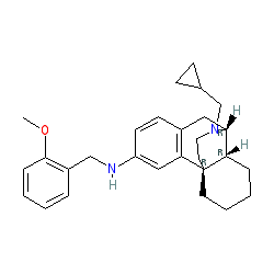 | SMILES | COc1ccccc1CNc1ccc2c(c1)[C@@]13CCCC[C@H]1[C@@H](C2)N(CC1CC1)CC3 |