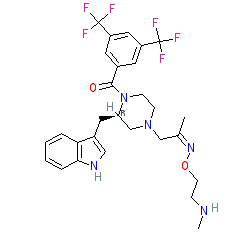 | SMILES | CNCCO/N=C(/C)CN1CCN(C(=O)c2cc(C(F)(F)F)cc(C(F)(F)F)c2)[C@H](Cc2c[nH]c3ccccc23)C1 |