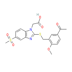| SMILES | COc1ccc(C(C)=O)cc1CSc1nc2cc(S(C)(=O)=O)ccc2n1CC(=O)O |