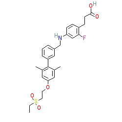 | SMILES | CCS(=O)(=O)CCOc1cc(C)c(-c2cccc(CNc3ccc(CCC(=O)O)c(F)c3)c2)c(C)c1 |