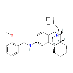 | SMILES | COc1ccccc1CNc1ccc2c(c1)[C@@]13CCCC[C@H]1[C@@H](C2)N(CC1CCC1)CC3 |