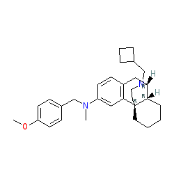 | SMILES | COc1ccc(CN(C)c2ccc3c(c2)[C@@]24CCCC[C@H]2[C@@H](C3)N(CC2CCC2)CC4)cc1 |