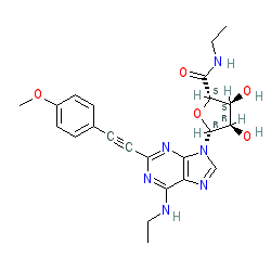 | SMILES | CCNC(=O)[C@H]1O[C@@H](n2cnc3c(NCC)nc(C#Cc4ccc(OC)cc4)nc32)[C@H](O)[C@@H]1O |