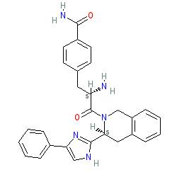 | SMILES | NC(=O)c1ccc(C[C@H](N)C(=O)N2Cc3ccccc3C[C@H]2c2nc(-c3ccccc3)c[nH]2)cc1 |