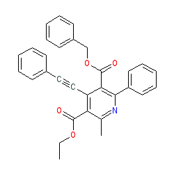 | SMILES | CCOC(=O)c1c(C)nc(-c2ccccc2)c(C(=O)OCc2ccccc2)c1C#Cc1ccccc1 |