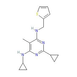 | SMILES | Cc1c(NCc2cccs2)nc(C2CC2)nc1NC1CC1 |