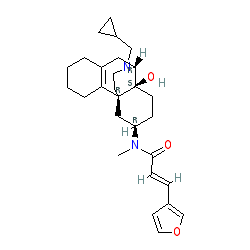 | SMILES | CN(C(=O)/C=C/c1ccoc1)[C@@H]1CC[C@@]2(O)[C@H]3CC4=C(CCCC4)[C@@]2(CCN3CC2CC2)C1 |