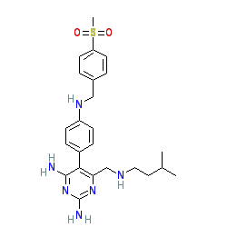 | SMILES | CC(C)CCNCc1nc(N)nc(N)c1-c1ccc(NCc2ccc(S(C)(=O)=O)cc2)cc1 |