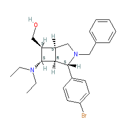| SMILES | CCN(CC)[C@@H]1[C@@H](CO)[C@H]2CN(Cc3ccccc3)[C@H](c3ccc(Br)cc3)[C@H]21 |