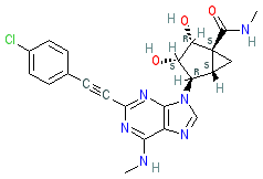 | SMILES | CNC(=O)[C@@]12C[C@@H]1[C@@H](n1cnc3c(NC)nc(C#Cc4ccc(Cl)cc4)nc31)[C@H](O)[C@@H]2O |
