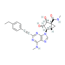 | SMILES | CCc1ccc(C#Cc2nc(NC)c3ncn([C@H]4[C@H](O)[C@H](O)[C@]5(C(=O)NC)C[C@H]45)c3n2)cc1 |