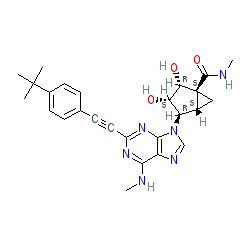 | SMILES | CNC(=O)[C@@]12C[C@@H]1[C@@H](n1cnc3c(NC)nc(C#Cc4ccc(C(C)(C)C)cc4)nc31)[C@H](O)[C@@H]2O |