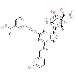 | SMILES | CNC(=O)[C@@]12C[C@@H]1[C@@H](n1cnc3c(NCc4cccc(Cl)c4)nc(C#Cc4cccc(C(=O)O)c4)nc31)[C@H](O)[C@@H]2O |
