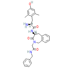 | SMILES | Cc1cc(O)cc(C)c1C[C@H](N)C(=O)N[C@H]1Cc2ccccc2CN(CC(=O)NCc2ccccc2)C1=O |