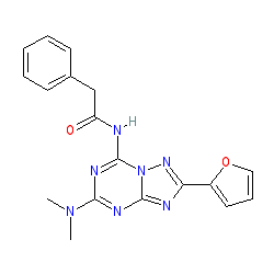 | SMILES | CN(C)c1nc(NC(=O)Cc2ccccc2)n2nc(-c3ccco3)nc2n1 |