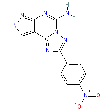| SMILES | Cn1cc2c(nc(N)n3nc(-c4ccc([N+](=O)[O-])cc4)nc23)n1 |