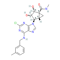 | SMILES | CNC(=O)[C@]12C[C@@H]1[C@@H](n1cnc3c(NCc4cccc(C)c4)nc(Cl)nc31)[C@H](O)[C@@H]2O |