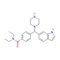| SMILES | CCN(CC)C(=O)c1ccc(C(c2ccc3cc[nH]c3c2)N2CCNCC2)cc1 |