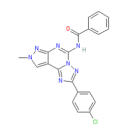 | SMILES | Cn1cc2c(nc(NC(=O)c3ccccc3)n3nc(-c4ccc(Cl)cc4)nc23)n1 |