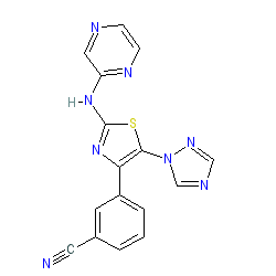 | SMILES | N#Cc1cccc(-c2nc(Nc3cnccn3)sc2-n2cncn2)c1 |