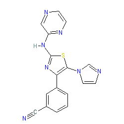 | SMILES | N#Cc1cccc(-c2nc(Nc3cnccn3)sc2-n2ccnc2)c1 |
