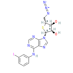 | SMILES | [N-]=[N+]=NC[C@H]1S[C@@H](n2cnc3c(Nc4cccc(I)c4)ncnc32)[C@H](O)[C@@H]1O |