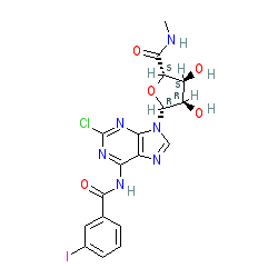 | SMILES | CNC(=O)[C@H]1O[C@@H](n2cnc3c(NC(=O)c4cccc(I)c4)nc(Cl)nc32)[C@H](O)[C@@H]1O |