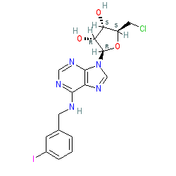 | SMILES | O[C@@H]1[C@@H](CCl)O[C@@H](n2cnc3c(NCc4cccc(I)c4)ncnc32)[C@@H]1O |