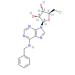 | SMILES | O[C@@H]1[C@@H](CCl)O[C@@H](n2cnc3c(NCc4ccccc4)ncnc32)[C@@H]1O |