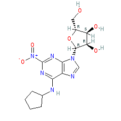 | SMILES | O=[N+]([O-])c1nc(NC2CCCC2)c2ncn([C@@H]3O[C@H](CO)[C@@H](O)[C@H]3O)c2n1 |