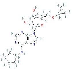 | SMILES | O[C@@H]1[C@@H](COC2CC2)O[C@@H](n2cnc3c(NC4CCCC4)ncnc32)[C@@H]1O |