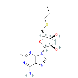 | SMILES | CCCSC[C@H]1O[C@@H](n2cnc3c(N)nc(I)nc32)[C@H](O)[C@@H]1O |