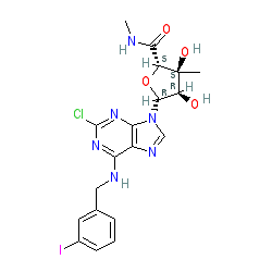 | SMILES | CNC(=O)[C@H]1O[C@@H](n2cnc3c(NCc4cccc(I)c4)nc(Cl)nc32)[C@H](O)[C@]1(C)O |