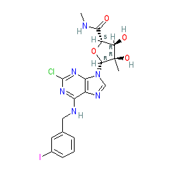 | SMILES | CNC(=O)[C@H]1O[C@@H](n2cnc3c(NCc4cccc(I)c4)nc(Cl)nc32)[C@](C)(O)[C@@H]1O |