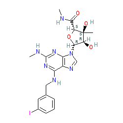 | SMILES | CNC(=O)[C@H]1O[C@@H](n2cnc3c(NCc4cccc(I)c4)nc(NC)nc32)[C@H](O)[C@]1(C)O |