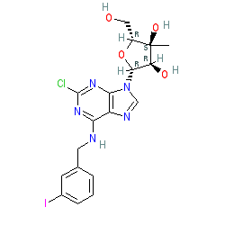 | SMILES | C[C@@]1(O)[C@@H](CO)O[C@@H](n2cnc3c(NCc4cccc(I)c4)nc(Cl)nc32)[C@@H]1O |