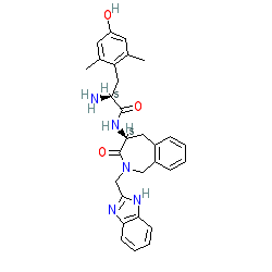 | SMILES | Cc1cc(O)cc(C)c1C[C@H](N)C(=O)N[C@H]1Cc2ccccc2CN(Cc2nc3ccccc3[nH]2)C1=O |