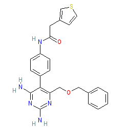 | SMILES | Nc1nc(N)c(-c2ccc(NC(=O)Cc3ccsc3)cc2)c(COCc2ccccc2)n1 |