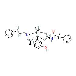 | SMILES | C[C@H]1CN(C/C=C/c2ccccc2)[C@@H]2C[C@@H](NC(=O)C(C)(C)c3ccccc3)C[C@@]1(c1cccc(O)c1)C2 |