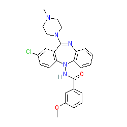 | SMILES | COc1cccc(C(=O)NN2c3ccccc3N=C(N3CCN(C)CC3)c3cc(Cl)ccc32)c1 |
